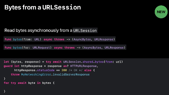 URLSession의 새로운 기능을 자세히 알고 싶으면 "Use async/await with URLSession" 이라는 영상을 보라고 하네요.