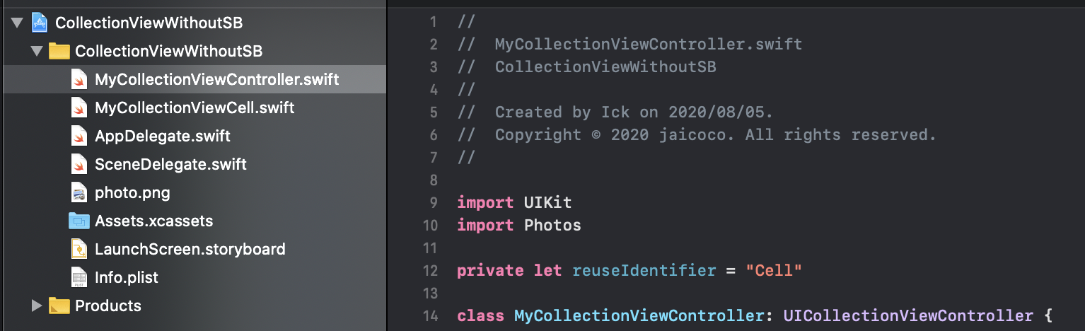 우선 저번에 만든 컬렉션 뷰를 아이폰의 사진으로 채우기 위해 Photos 프레임워크를 import 합니다.