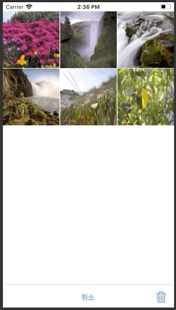 이번글에서는 사진을 선택하고 해제할 때 이벤트를 발생하는 것과 컬렉션 뷰에서 사진을 삭제하는 방법 그리고 BarButtonItem의 비활성화를 하는 방법에 대해 알아보았습니다.