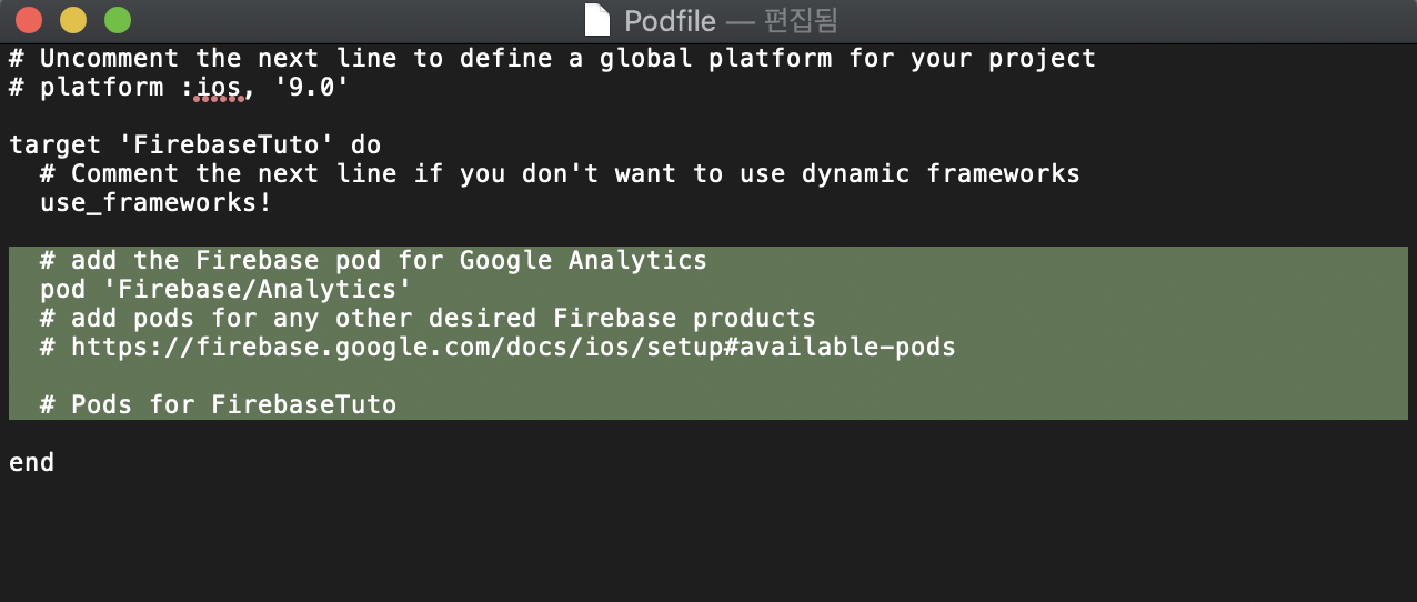 pod init 명령어를 수행하면 위와 같이 Podfile이 추가될 텐데요 이걸 열어서 아래 코드를 붙여 넣어 주시면 됩니다.