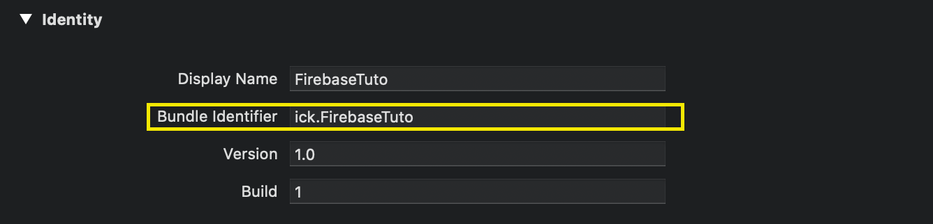 젤 위에 있는 iOS 번들 ID는 아까 Xcode에서 만든 프로젝트에서 앱 상태의 General 부분에 적혀있습니다.