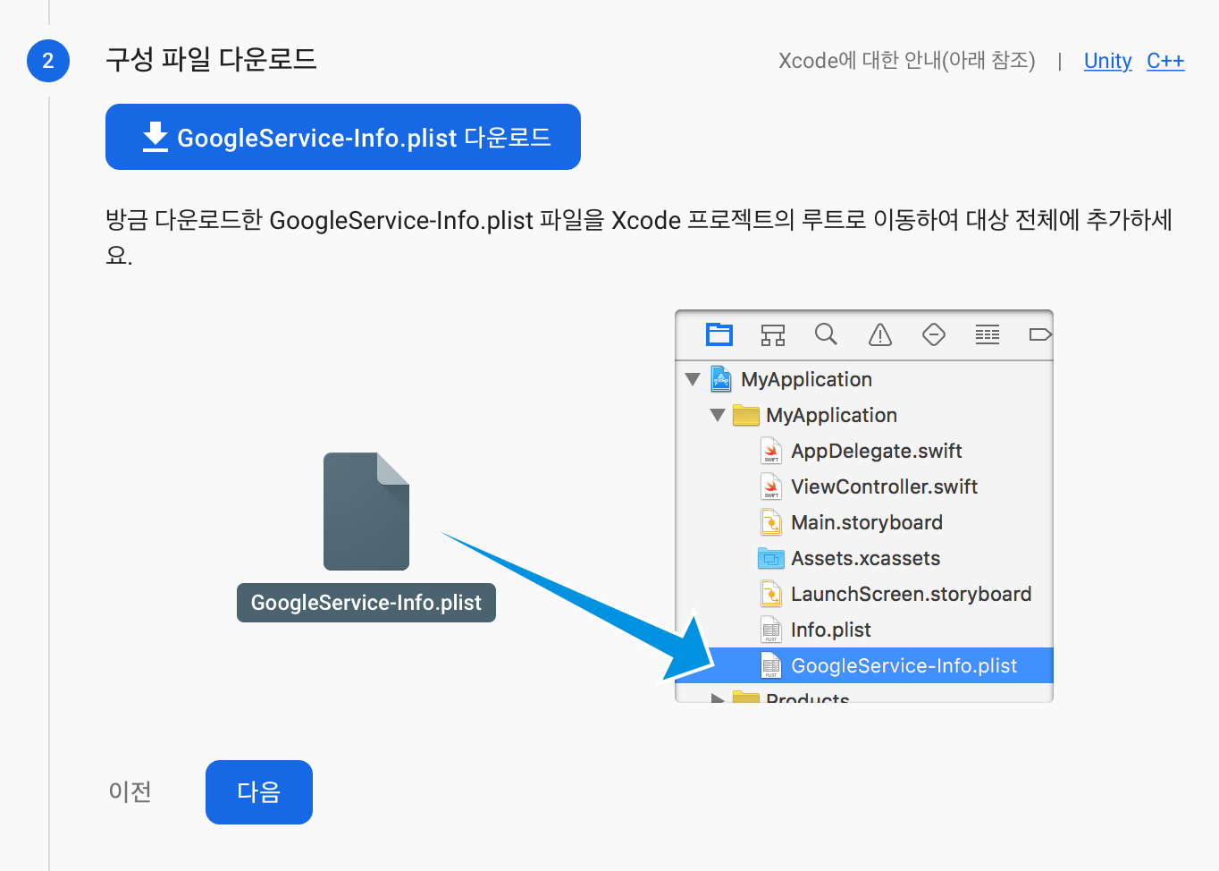 넘어가면 위와 같은 화면이 나오게 됩니다. 파일을 다운로드하고 Xcode 프로젝트에 추가해주면 됩니다! 가끔 두 번 눌러서 파일 이름이 달라지는 경우가 있는데요, 파일을 추가한 뒤 파일 명이 GoogleService-Info.plist인지 확인해주세요!