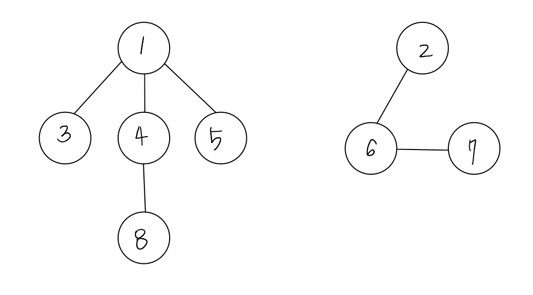 위의 그림에서 그래프는 2개입니다. 예를 들어 2,3번 노드를 선택해서 같은 그래프인지 판별하면 다른 그래프라고 판별해줄 것입니다.