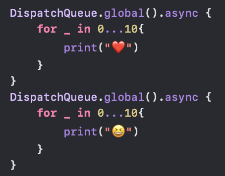 위와 같이 😆를 출력하는 작업은 우선순위가 높은 큐에 넣었고 ❤️를 출력하는 작업은 우선순위가 낮은 큐에 넣었습니다.