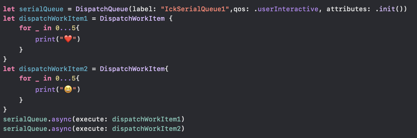 let customQueue = DispatchQueue(label: <#T##String#>, qos: <#T##DispatchQoS#>, attributes: <#T##DispatchQueue.Attributes#>, autoreleaseFrequency: <#T##DispatchQueue.AutoreleaseFrequency#>, target: <#T##DispatchQueue?#>)